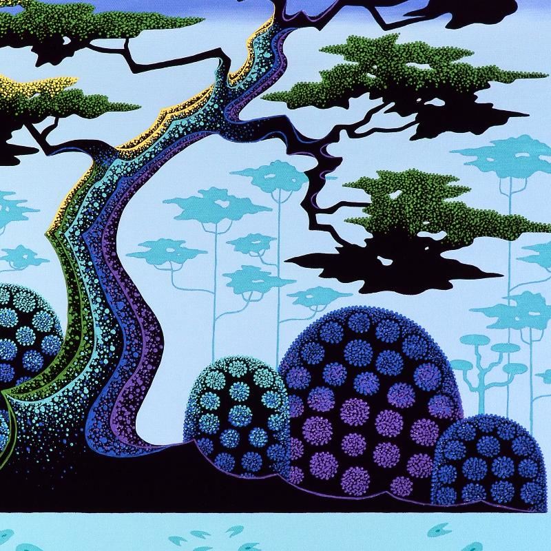 Larissa Holt, a student of distinguished artist Eyvind Earle (1916-2000), uses bold colors and breathtaking scenery to create images of Nature in her own unique style. "Lotus by Moonlight" is a limited edition giclee on stretched canvas by Holt, numbered