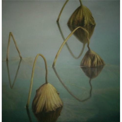 <tr><td>Title:Lotus on water, 34x34" oil on canvas</td></tr>