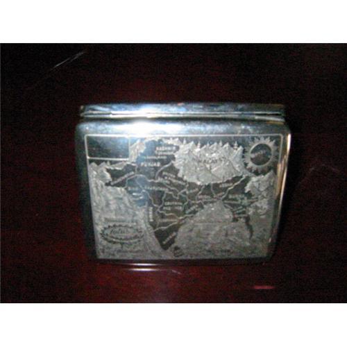 This attractive and collectible world map cigarette case has mark of Lotus engraved, in very good vintage condition. The hook connecting the elastic interior is missing with loose elastic on the other. The interior is covered with golden tone metal.It is in proper working condition and would make a nice collector's addition. It is 3 by 4 inch.