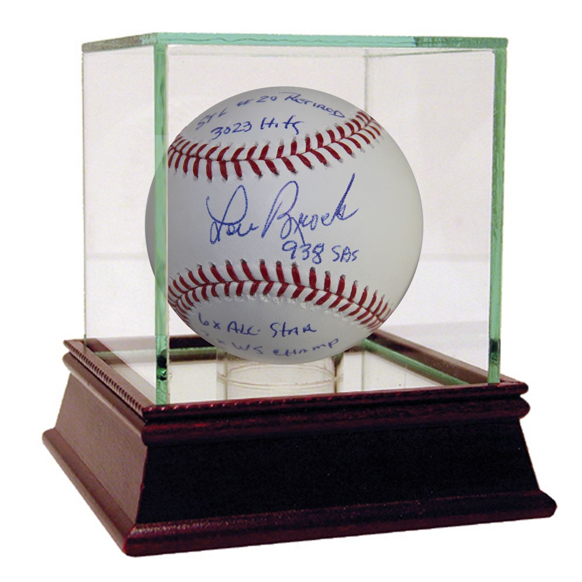 Lou Brock Signed MLB Baseball W/ "STL #20 Retired, 3023 Hits, 938 SB, 6X All Star, 2X WS Champ" Insc