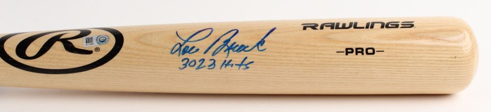Rawlings Pro baseball bat has been hand-signed and inscribed in blue felt-tip pen by Lou Brock (Cardinals, HOF).