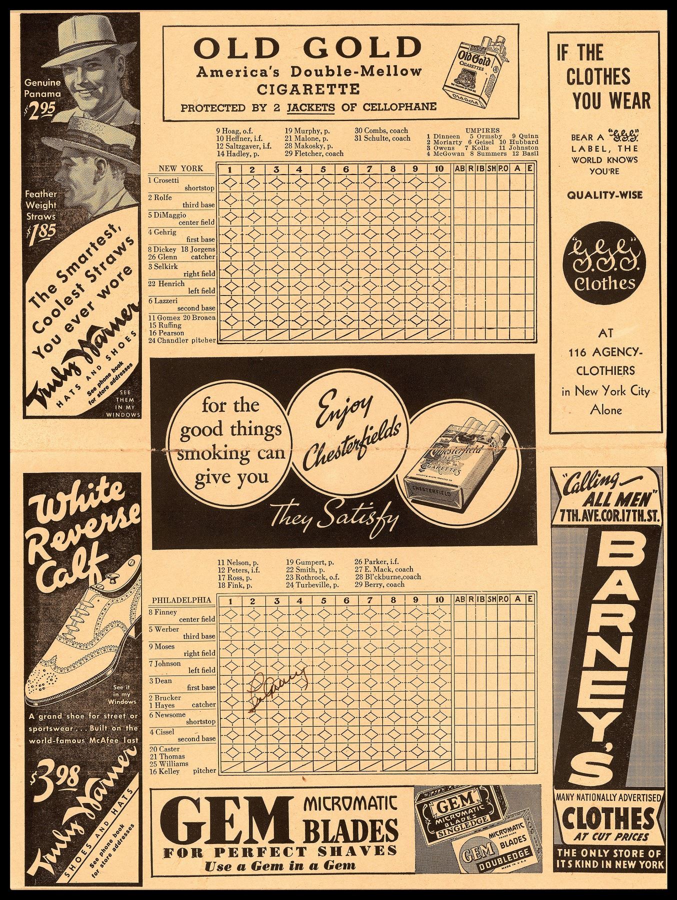 This is a 1937 New York Yankees Scorecard, approximately 7x10, that has been hand signed by Lou Gehrig. This item has been certified authentic by Curt Schilling (from The Curt Schilling Collection) and comes with the matching full-page certificate of provenance , which was signed by Curt Schilling himself. This item has been certified authentic by PSA/DNA