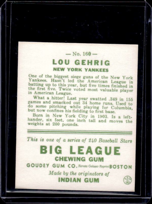 Lou Gehrig Reprint Goudey Big League Chewing Gum