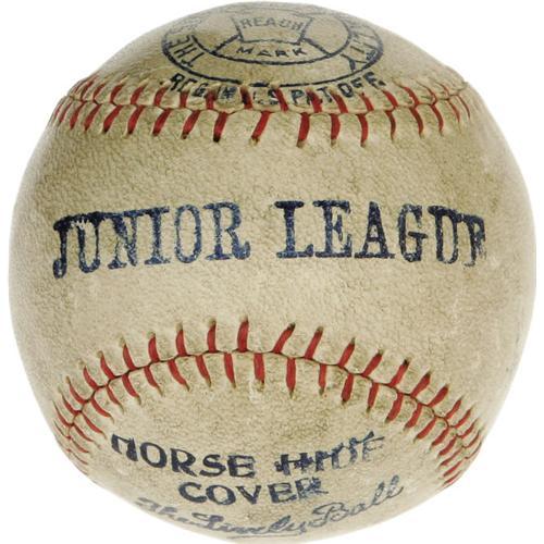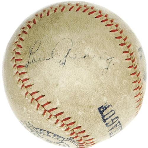 <B>Early 1930's Lou Gehrig Single Signed Baseball.</B></I> Anyone with even a passing knowledge of the Hall of Fame autograph market knows just how tough the Gehrig single is. Perhaps it was the Iron Horse's tremendous humility that precluded him from taking center stage, or the fact that most autograph hunters sought out his teammate Babe Ruth instead. Whatever the reason, you'll find one hundred (or more) Ruth singles for every Gehrig, so one shouldn't miss this rare chance to fill a hole that is found in even the most advanced collections. Lou's unpersonalized side panel signature rates a very conservative 6/10--many would call it 7/10 instead. The "Junior League" ball that serves as its home is a hair smaller than Official baseballs, but still much larger than the "mini balls" that occasionally surface in the hobby. When it comes to Lou Gehrig solos, such minor considerations must be taken in context. Your collection will increase exponentially in quality with the addition of this piece. <I>LOA from PSA/DNA.</B></I>