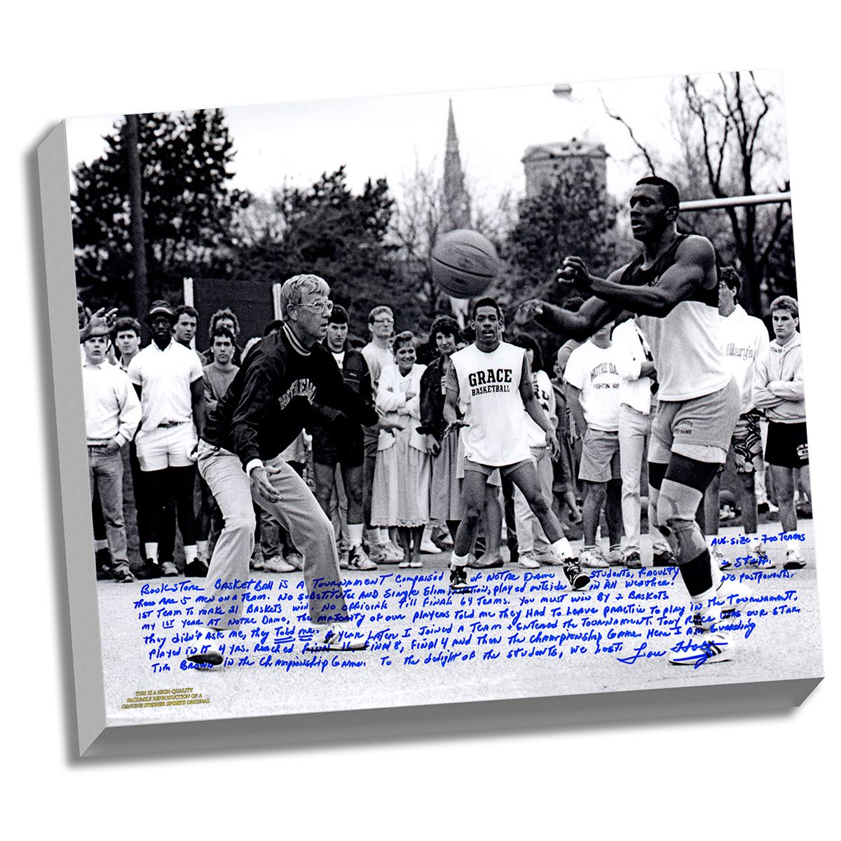 Lou Holtz Facsimile Basketball Vs. Tim Brown Story Stretched 16x20 Story Canvas