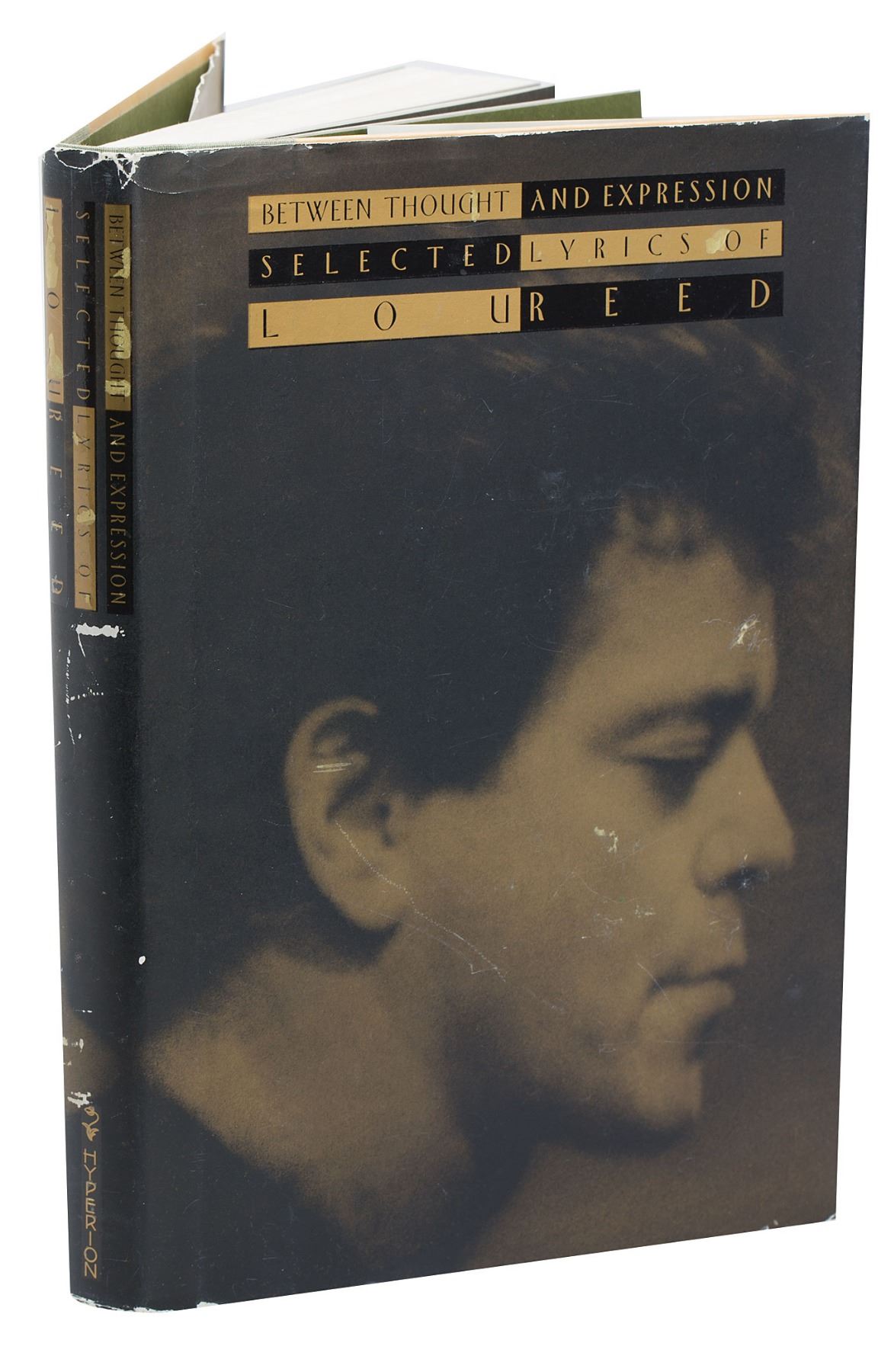 Signed book: Between Thought and Expression: Selected Lyrics of Lou Reed. First edition. NY: Hyperion, 1991. Hardcover with dust jacket, 5.75 x 8.5, 182 pages. Signed vertically on the half-title page in black ink. In fine condition, with light wear to the dust jacket.