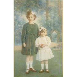 Louis C Goddard (Exh. 1901-21) watercolour, Portrait of Violet and Lilian Rees, signed, 17 x 10.5 ins. £400-500