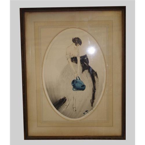Louis Icart, 1888-1950, broken jug, Color etching, c1924. Signed, titled, and numbered in pencil. Housed in its original wooden frame. A very good impression and would make a great addition to any fine collection.<P>