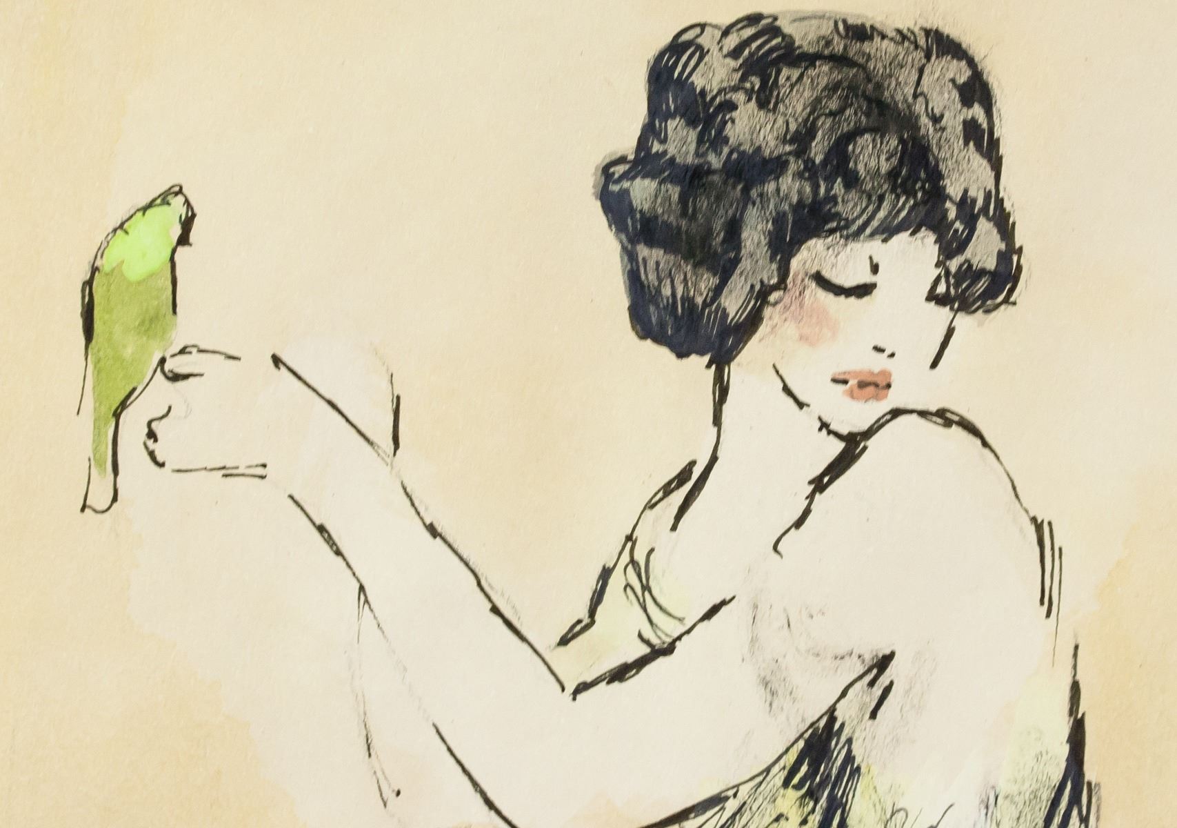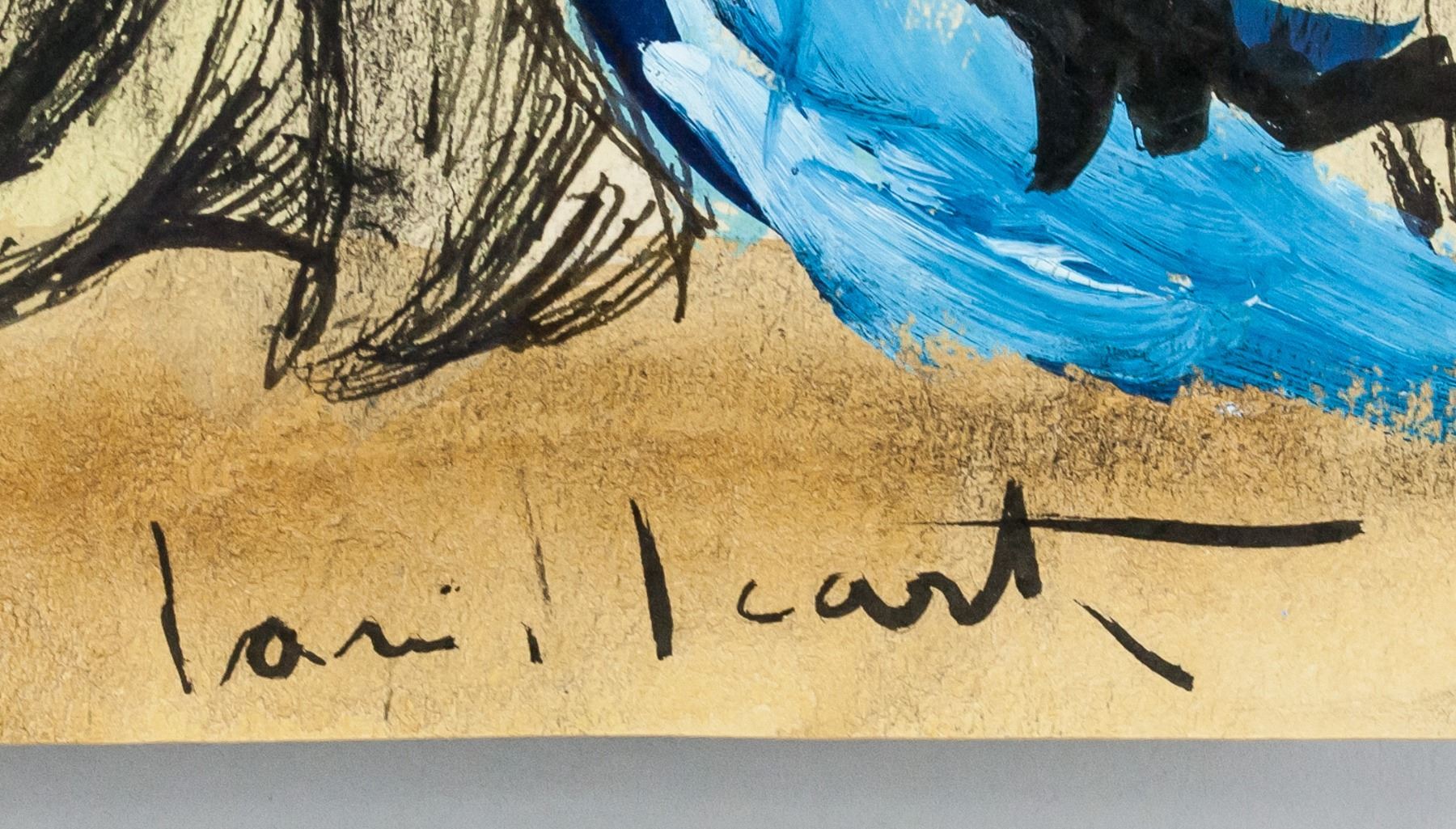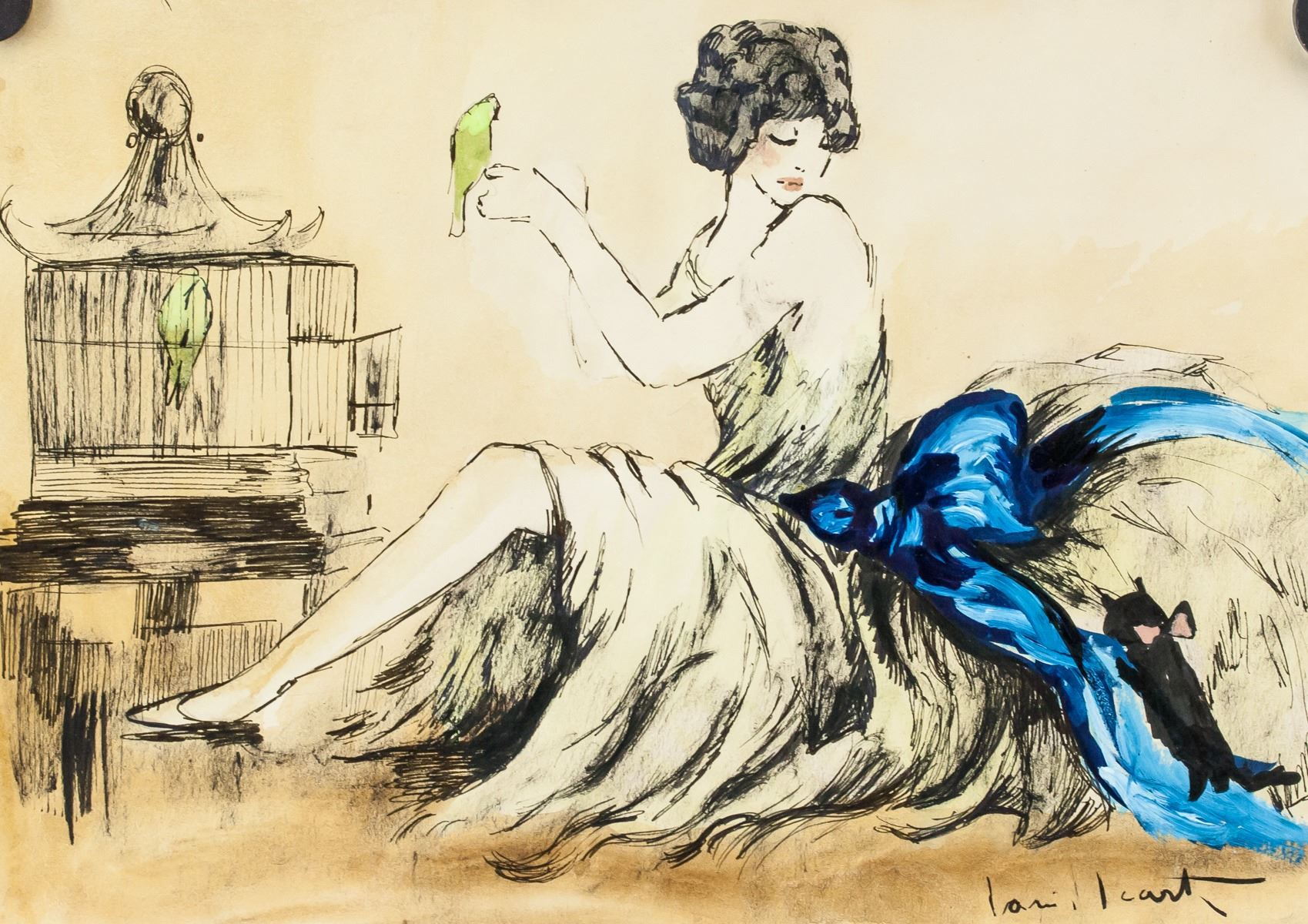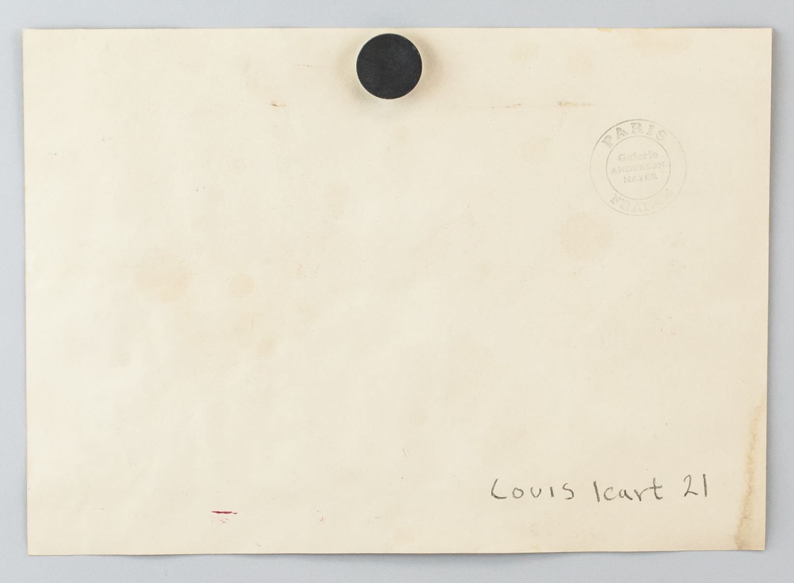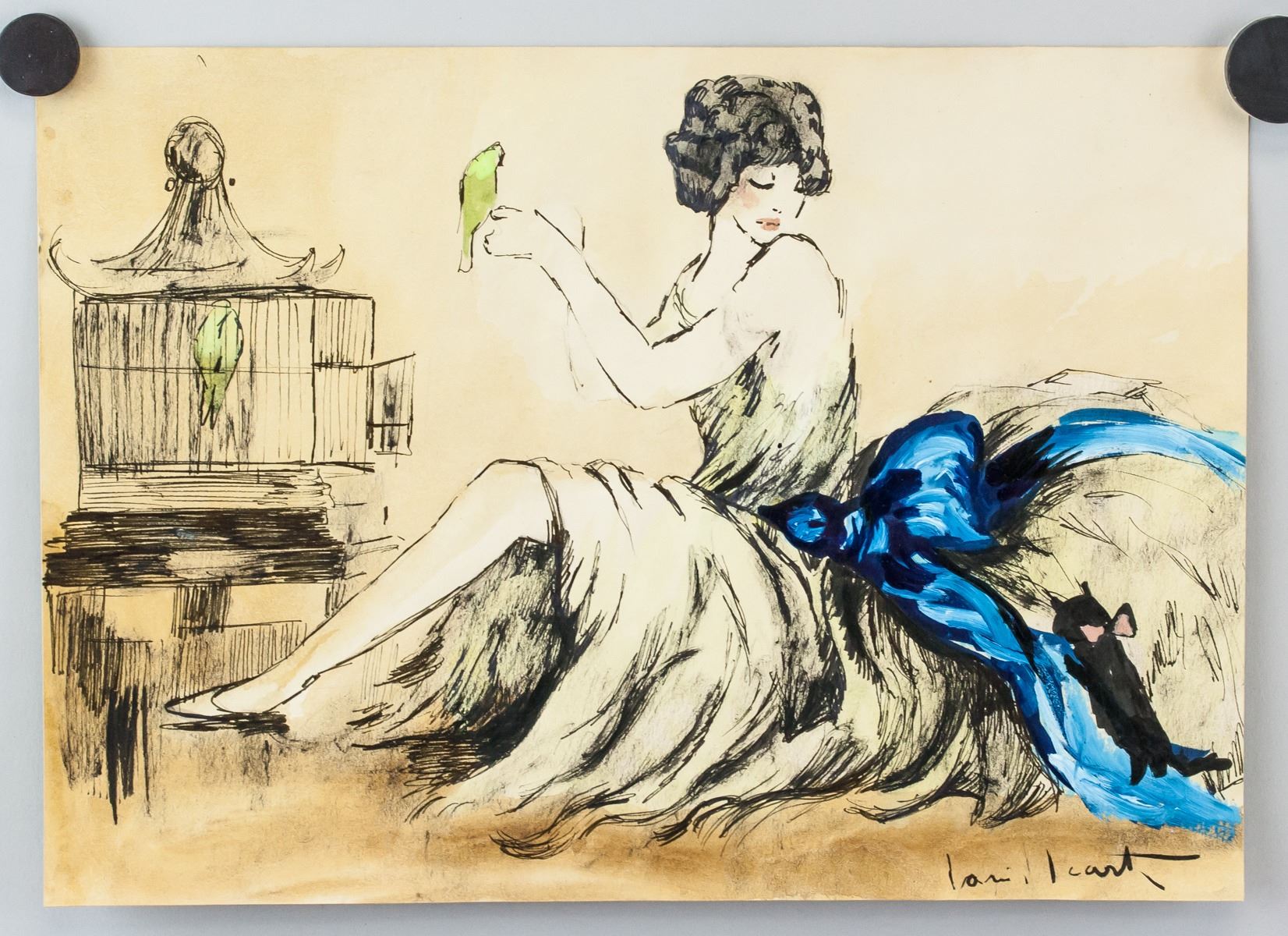Mixed media on paper. Featuring a portrait of a seated woman. Signed on the lower right corner. Stamped PARIS FRANCE Galerie ANDERSON MAYER on verso. Inscribed Louis Icart 21 on verso. After Louis Icart (1888-1950, French). 20 x 28 cm (8 x 11 inches). PROVENANCE: This lot carries limited provenance from a Southern Ontario estate