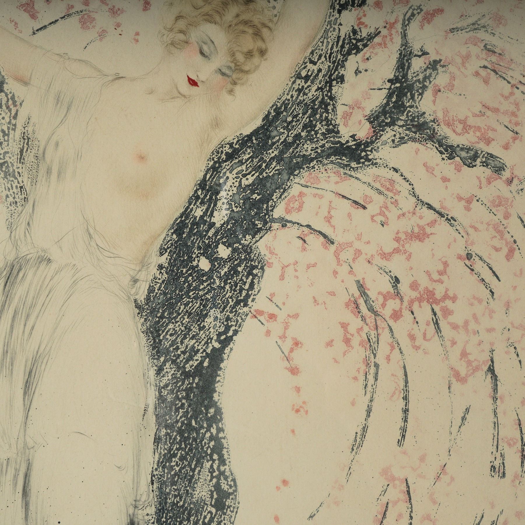 Louis Icart, Aquatint Etching on Paper, Spring Blossoms, Signed