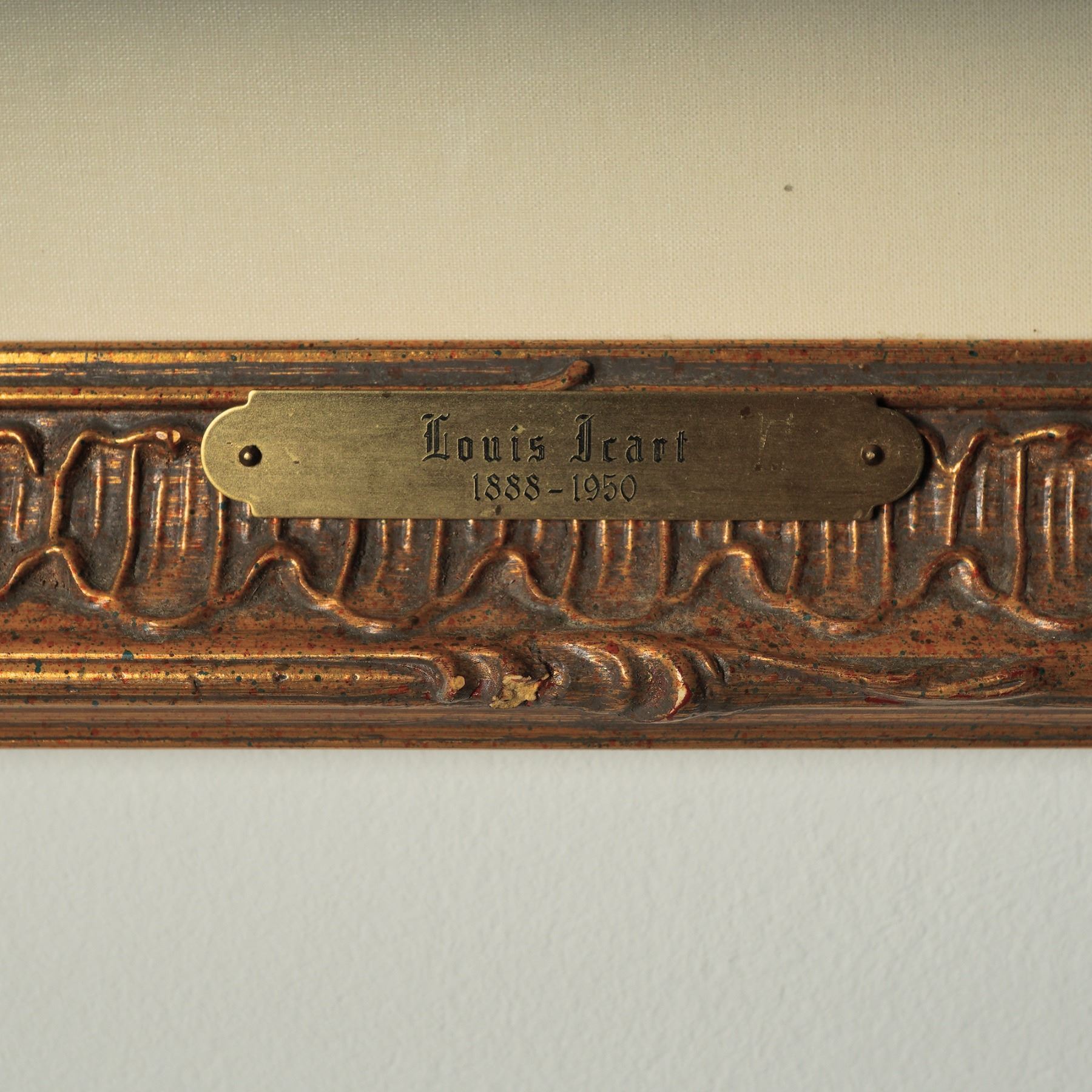 An exquisite example of Art Deco elegance and feminine grace, this aquatint etching on paper titled Spring Blossoms by the celebrated French artist Louis Icart captures the ethereal beauty of springtime. With his signature mastery of line and texture, Icart depicts a young woman surrounded by delicate blossoms, her flowing garments echoing the movement of a gentle breeze. The composition brims with romantic vitality and charm, hallmarks of Icart's most desirable works. The drypoint technique is employed with particular delicacy here, soft, expressive lines and velvety textures invite close admiration. The frame itself, as seen in the image, is richly patinated and complements the etching with vintage sophistication. Louis Icart was one of the most influential illustrators of the early 20th century, best known for his depictions of Parisian women, fashion, and boudoir scenes. A celebrated figure in both France and the United States during the 1920s and 30s, his works were widely collected and exhibited. Drawing on the aesthetics of Impressionism and Art Nouveau, Icart infused his drypoints with elegance, sensuality, and wit. His prints remain icons of Art Deco luxury and are prized by collectors worldwide. Signature in graphite on lower right. On lower left: 295.