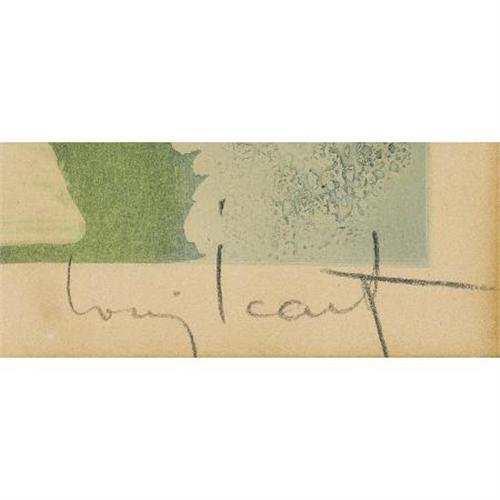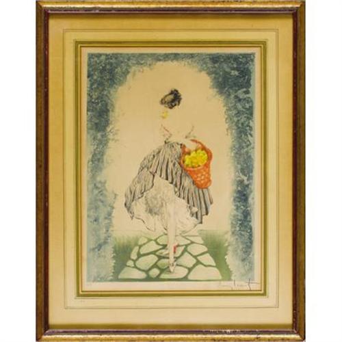 <B>LOUIS ICART (French, 1888-1950)</B></I><BR><I>Basket of Apples</B></I>, 1924 <BR>Color etching<BR>16-3/4 x 12-1/4 inches (42.5 x 31.1 cm)<BR>Signed lower right:<I> Louis Icart</B></I><BR>Inscribed lower left: <I>253</B></I><BR> <B>Condition Report:</B> Toning and mat burn, adhered to cardboard and mat.<BR><BR><b>Shipping:</b> Framed - with Glass, Medium (<a target="_blank" href="http://www.heritageauctions.com/common/shipping.php">view shipping information</a>)