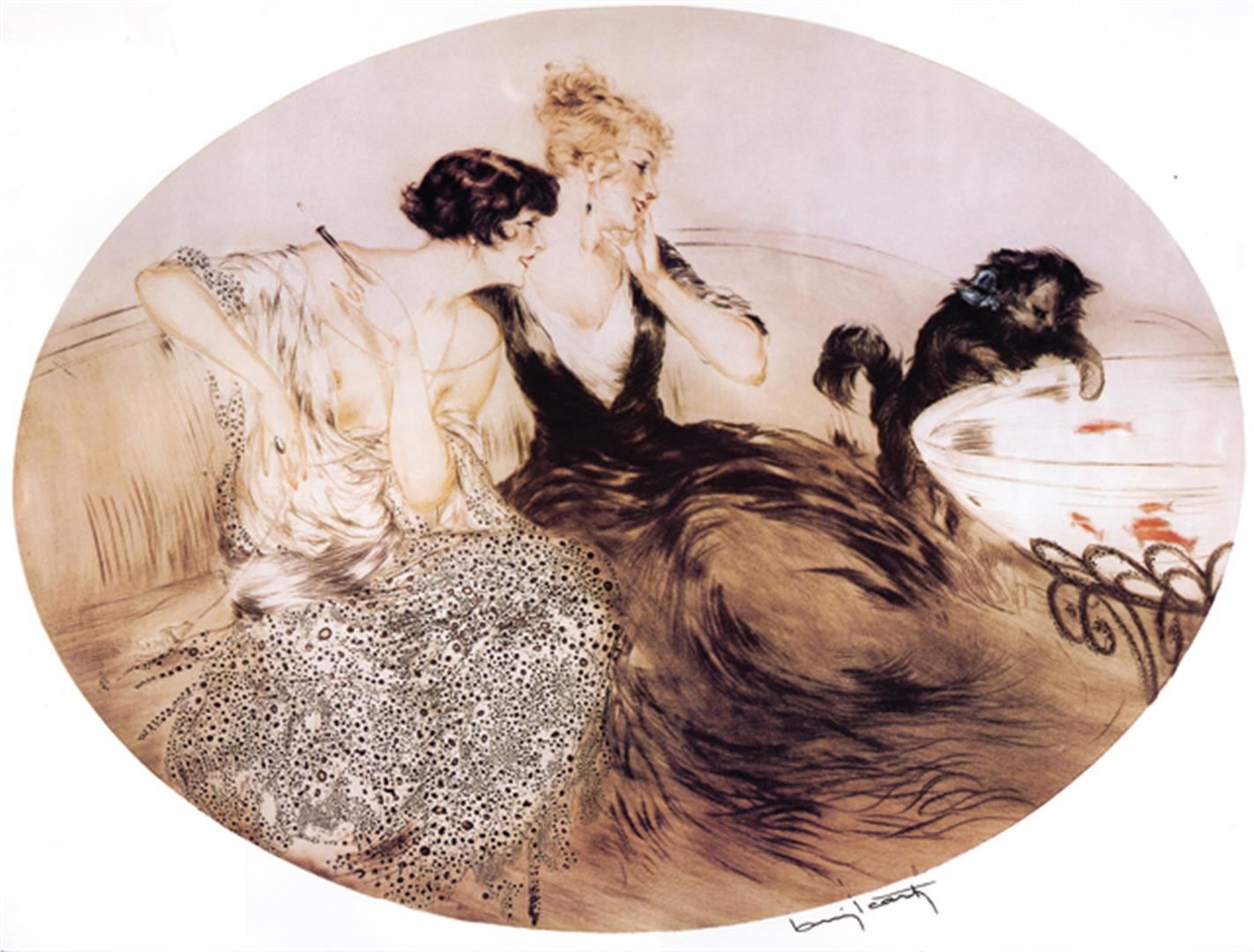 Artist: Louis Icart Title: Deux Filles & La Chat Medium: Fine Art Reproduction Giclee on Canvas Image Size: Approximately 20 inches x 26.25 inches Unframed on Unstretched Canvas Biography: Louis Icart was born in Toulouse, France. In Icart's drawings, one sees the Impressionists Degas and Monet and, in his rare watercolors, the Symbolists Odilon Redon and Gustave Moreau. In fact, Icart lived outside the fashionable artistic movements of the time and was not completely sympathetic to contemporary art. Nonetheless, his Parisian scenes are a documentation of the life he saw around him and they are nearly as popular today as when they were first produced.