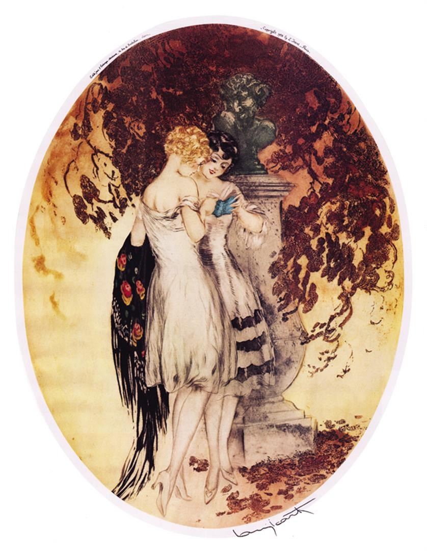 Artist: Louis Icart Title: Deux Filles Medium: Fine Art Reproduction Giclee on Canvas Image Size: Approximately 20 inches x 15.5 inches Unframed on Unstretched Canvas Biography: Louis Icart was born in Toulouse, France. In Icart's drawings, one sees the Impressionists Degas and Monet and, in his rare watercolors, the Symbolists Odilon Redon and Gustave Moreau. In fact, Icart lived outside the fashionable artistic movements of the time and was not completely sympathetic to contemporary art. Nonetheless, his Parisian scenes are a documentation of the life he saw around him and they are nearly as popular today as when they were first produced.