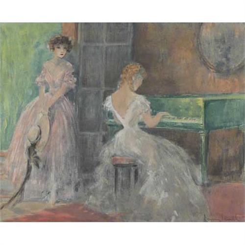 Louis Icart (1888-1950), Dry point Etching, "Summer Music", 1953, 13 3/4" x 16 3/4", Pencil signed lower right. Water damage to mat only.