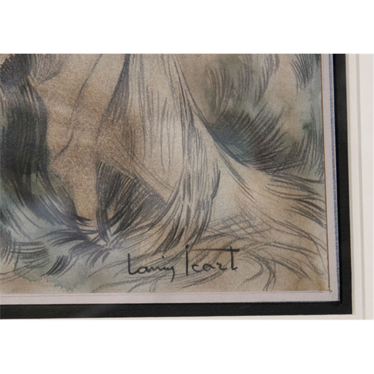 Louis Icart, Nude on Rug (Study for Paresse), Graphite and Pastel Drawing