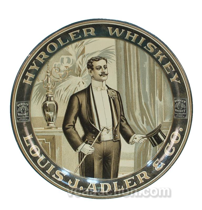Louis J. Adler & Co. Tin Tip Tray, "Hyroler Whiskey" in excellent condition - 4" diam