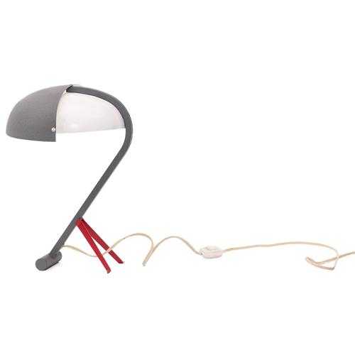 Louis Kalff desk lamp, by Phillips, the Netherlands, c.1957, enameled metal shade in white and textured gray over an enameled steel base in gray and red, 10.75"w x 15"h, very good condition