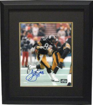 Louis Lipps was drafted by the Pittsburgh Steelers in the 1st round of the 1984 NFL Draft after a college football career at The University of Southern Mississippi. In his first season, Lipps broke the National Football League record for punt return yardage by a rookie with 656 yards. Louis returned one punt for a touchdown and also caught 45 passes for 860 receiving yards and 9 receiving touchdowns. He was named the NFL's Offensive Rookie of the Year at season's end and was also named to the AFC Pro Bowl team for that year. The Steelers named him the Team's MVP for the 1985 season. Louis Lipps has hand signed this Pittsburgh Steelers 8x10 Photo. FI Hologram and Certificate of Authenticity from Athlon Sports. Custom Black Mat and Premium Black Frame as shown.