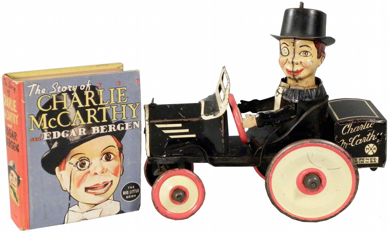 Louis Marx "Charlie McCarthy" Tin Wind-Up Toy. Comes with Charlie McCarthy and Edgar Bergen Big Little Book. Both in excellent condition, toy has minor wear to high spots. Starting bid $100
