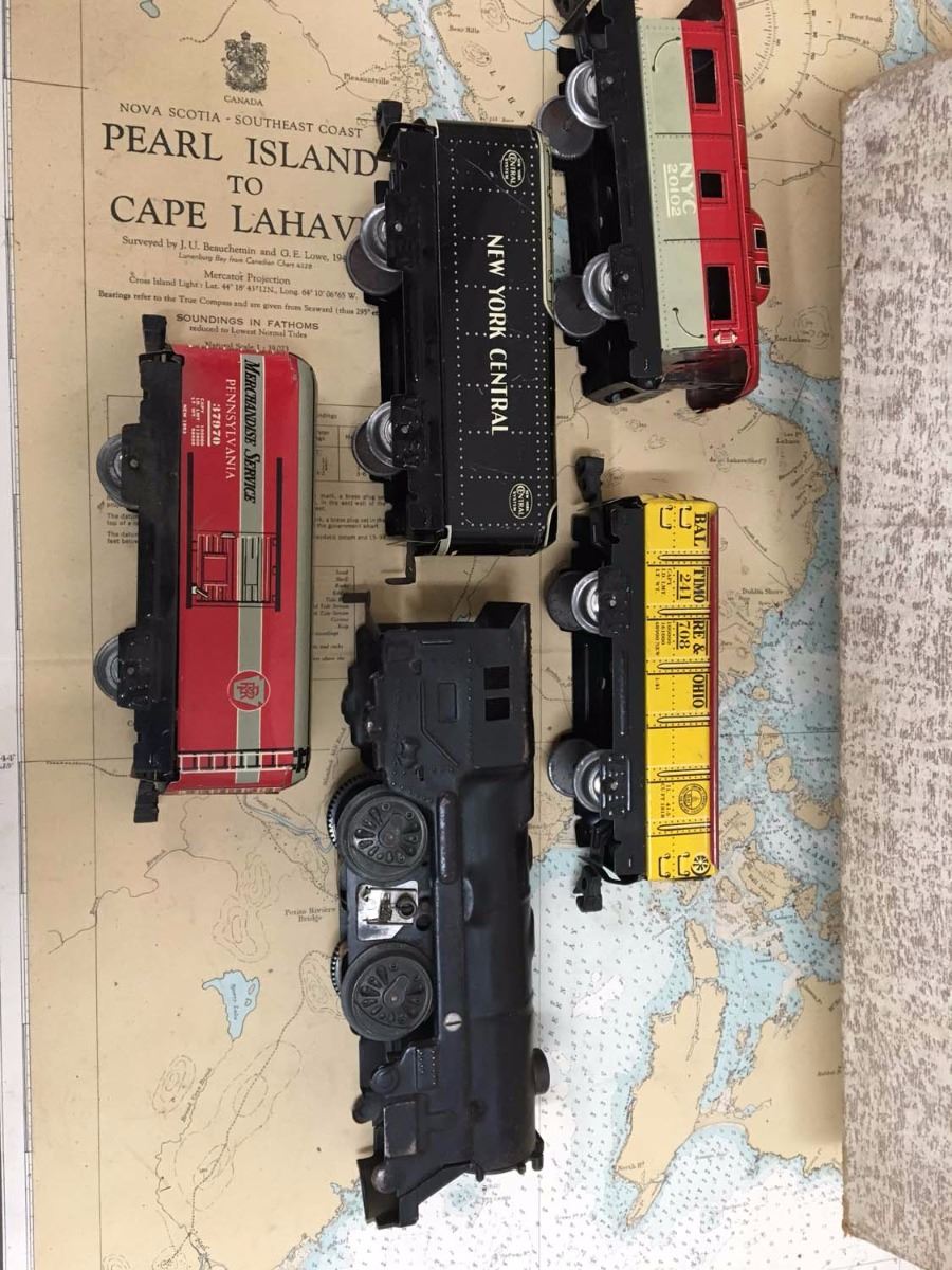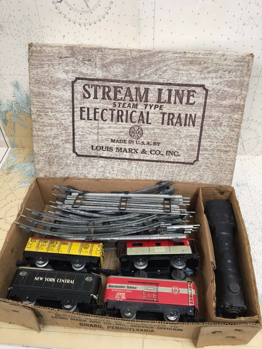 Louis Marx & co Pressed Steal electric train set in box (no transformer)