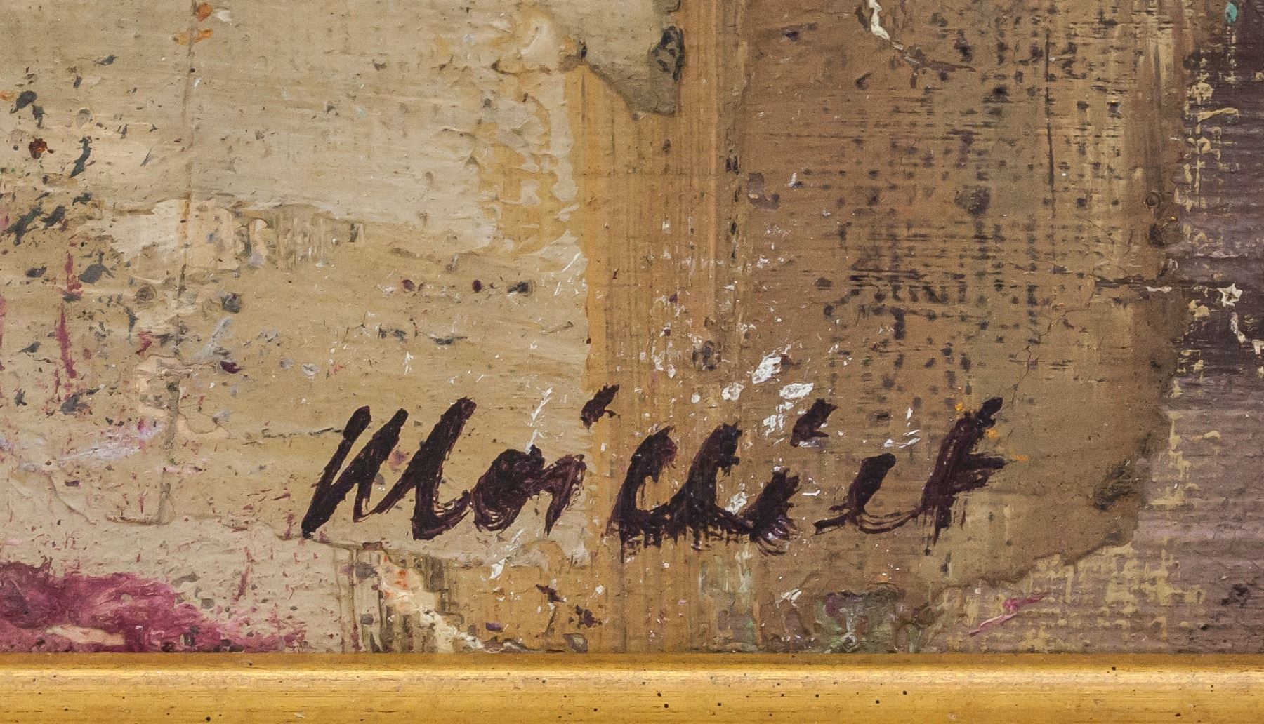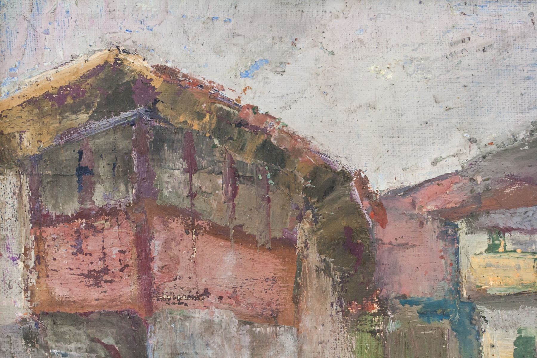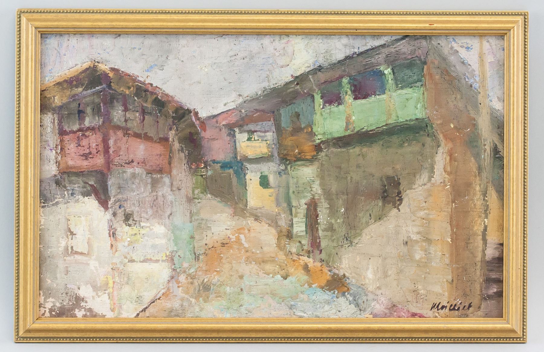 Oil on canvas, framed. Featuring blurry image of houses, as if seen through heavy rain. Signed "Moilliet" in the bottom right corner. Attributed to Louis Moilliet (1880-1962, Swiss). 29 x 48 cm (12.5 x 19 in), Frame: 34 x 55 cm (13.5 x 21.5 in). Provenance: This lot carries limited provenance from a Southern Ontario estate