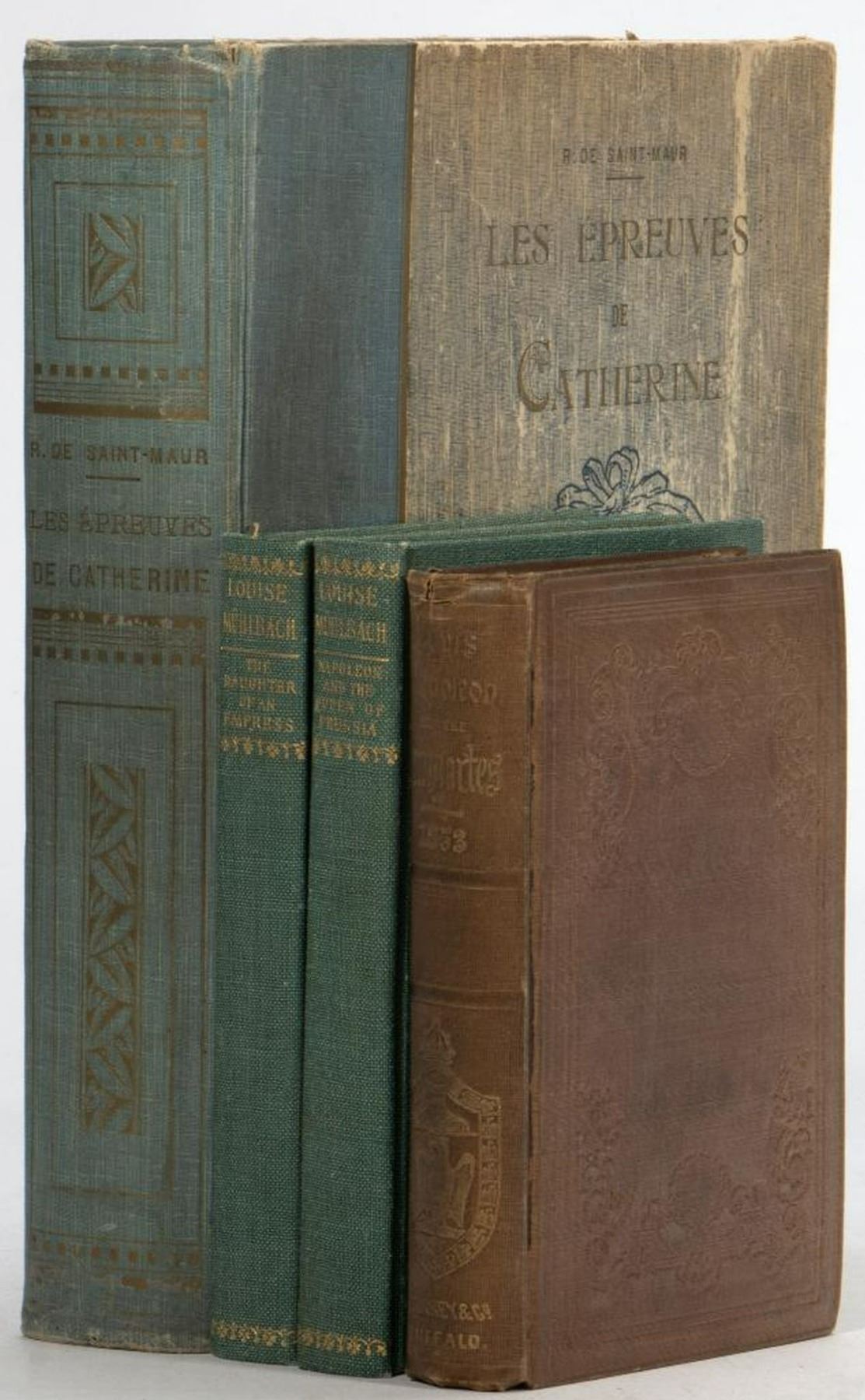 Napoleon and His Times, and three others, one in French, generally good condition: 1. DE PUY, HENRY W. Louis Napoleon and His Times: With Notices of His Writings; A Memoir of the Bonaparte Family; and a Sketch of French History to the Empire, 1853. Buffalo: Phinney & Co., 1853. First edition. 2.-3. MUHLBACH, LOUISE. 2. The Daughter of an Empress. 3. Napoleon and the Queen of Prussia. New York and London: The Co-operative Company, 1903. 4. SAINT-MAUR, R. DE. Les Epreuves de Catherine. Paris: Ancienne Librairie Furne, Boivin & Cie, Editeurs, 1929.