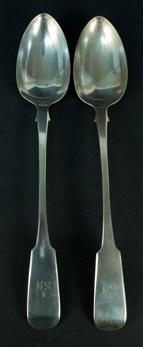Sterling silver large serving spoon set (x2), maker's mark and hallmarks on the back LPB and the abbreviation of the Seminary of Nicolet on the front SN