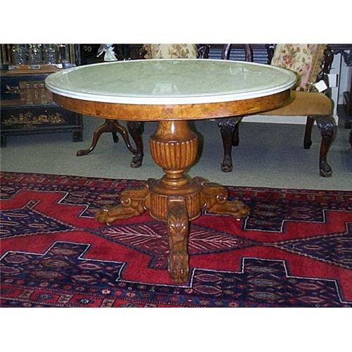Louis Philippe Salon Table with a Beautifully Carved Elm Base and a Marble Top