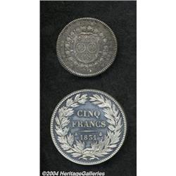 Louis Philippe I Pattern 5 Francs 1831A, struck in white metal and similar to KM-A34, prooflike BU, plus a silver jeton of Louis XVI, toned XF, 29 mm.From the I. Kaufman Arenberg Collection. 2 coins Important notice: Heritage usually auctions material at the rate of 200-250 lots per hour. On some occasions eBay Live bid software or the Internet may not be able to keep up with the pace of the auction. We recommend placing a realistic absentee bid now as insurance to avoid disappointment. Occasionally the auctioneer may eliminate or reject an eBay Live bid, and the auctioneer may also reopen a lot after the close of the eBay live bidding (usually because we missed an audience bid), and may reject your bid even if it shows you as the winning bidder. By bidding via eBay Live, you agree that Heritage may award the lot to another bidder at its sole discretion under the circumstances described above or any other reasonable circumstances. Also please note that all Heritage lots purchased through eBay Live carry a 20% Buyer's Premium. Please make sure you read the Terms and Conditions before you bid.