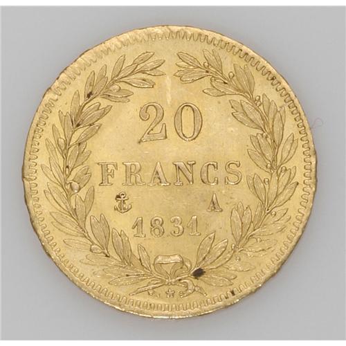 Louis Philippe I gold 20 Francs 1831-A, KM746.1, raised