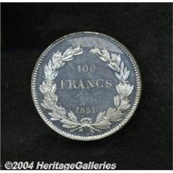 <B>Louis Philippe Pewter Pattern 100 Francs 1831, </B></I>Mazard 1062, "100 Francs," design by Rosat. UNC, very minor oxidation evident on both sides. <BR><BR><B>Important notice:</B> Heritage usually auctions material at the rate of 200-250 lots per hour. On some occasions eBay Live bid software or the Internet may not be able to keep up with the pace of the auction. We recommend placing a realistic absentee bid now as insurance to avoid disappointment. Occasionally the auctioneer may eliminate or reject an eBay Live bid, and the auctioneer may also reopen a lot after the close of the eBay live bidding (usually because we missed an audience bid), and may reject your bid even if it shows you as the winning bidder. By bidding via eBay Live, you agree that Heritage may award the lot to another bidder at its sole discretion under the circumstances described above or any other reasonable circumstances. Since eBay bids are not shown to us until we open the lot on the floor, we treat those bids just like floor bids. In most cases the floor responds before the eBay bid is presented to us, due to Internet lag time, so for consistency we have made it a policy that floor bids are always considered first over tie eBay live bids. Also please note that all Heritage lots purchased through eBay Live carry a 20% Buyer's Premium. Please make sure you read the Terms and Conditions before you bid.