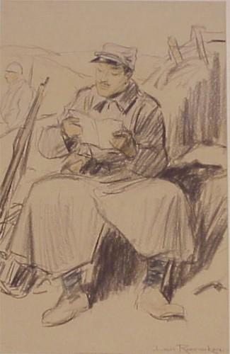 Louis Raemaeker (1859-1956) Dutch, LETTER FROM HOME, color pastel and watercolor on paper, 17 x...