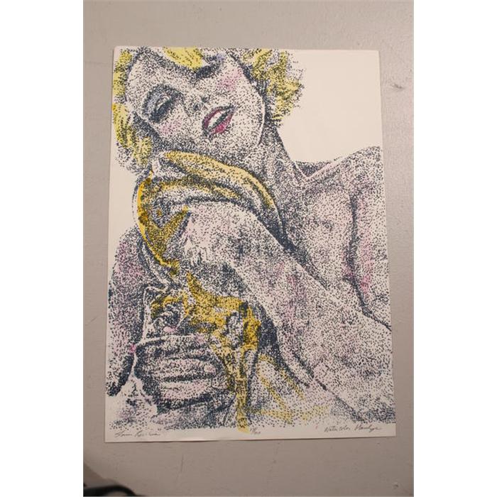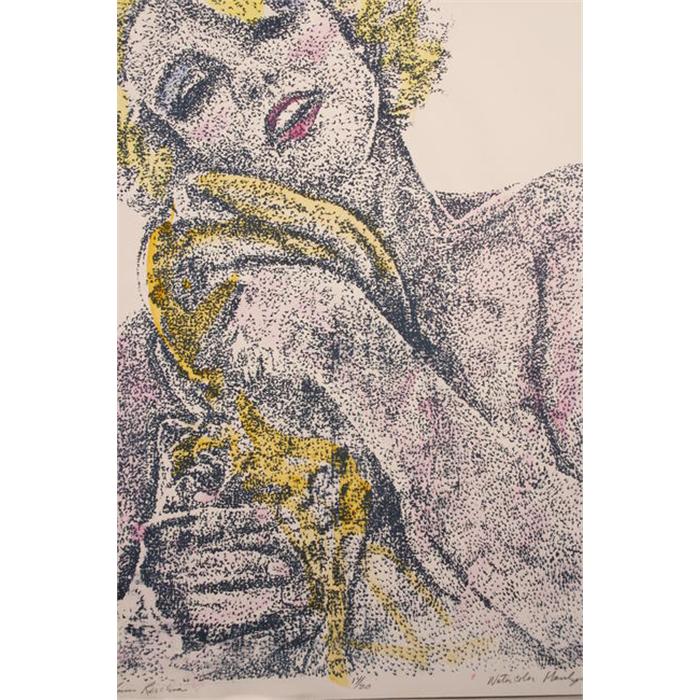 28.5h x 20w inches, silkscreen/watercolor, perfect condition