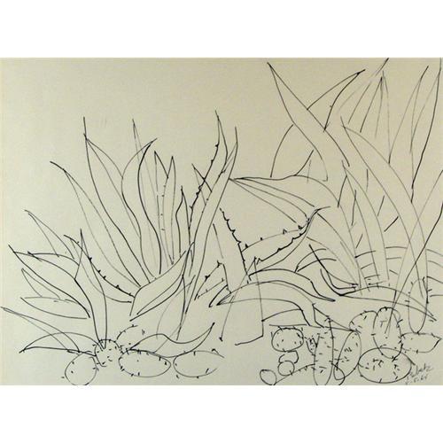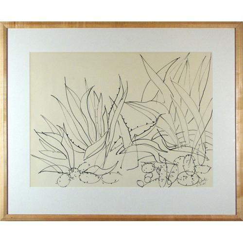 Louis Ribak (1902-1979) Pen & Ink, "Aloe", 1964, sight size 16 3/4" x 22 3/4", signed lower right