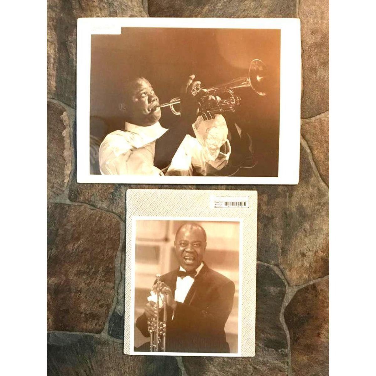Louis "Satchmo" Armstrong, Jazz Musician pair of sepia-tone photo prints, on heavy card stock, created for The American Heritage Gallery in the early 1990's. 11" X 14" & 8" X 10".Â