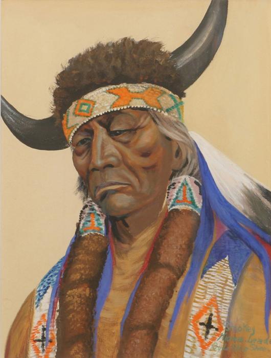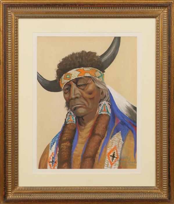 Louis Shipshee (1896-1974). Smoky-Kiowa Leader. 17" x 12 1/2" gouache. titled and signed lower right. Condition Report: Fine condition.