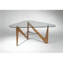 Louis Sognot coffee table France, c. 1950 walnut, steel, glass 35.5"w x 25.75"d x 17.5"h