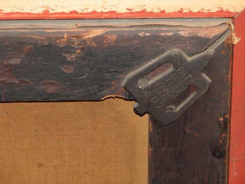 Condition: In generally good condition apart from an old repair in the center above the fish head, a few surface scratches, stretcher bar marks.