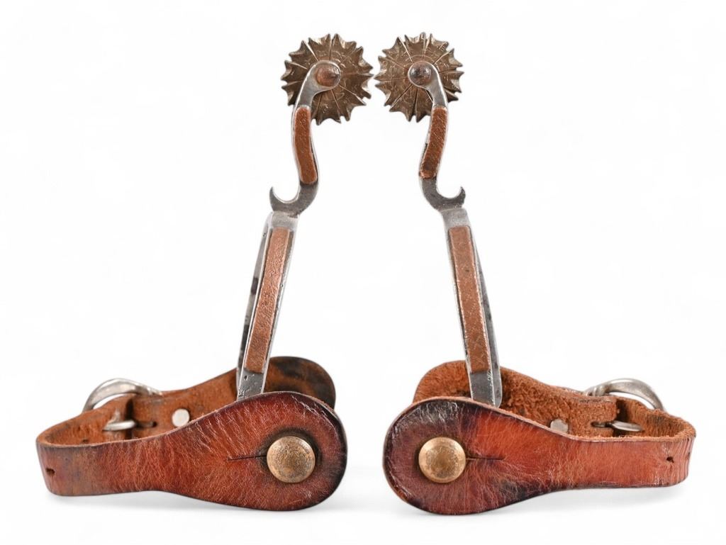 Circa 1930's-1940's by Louis Marvin “Cowboy” Traylor. 1.5" rowels, leather straps