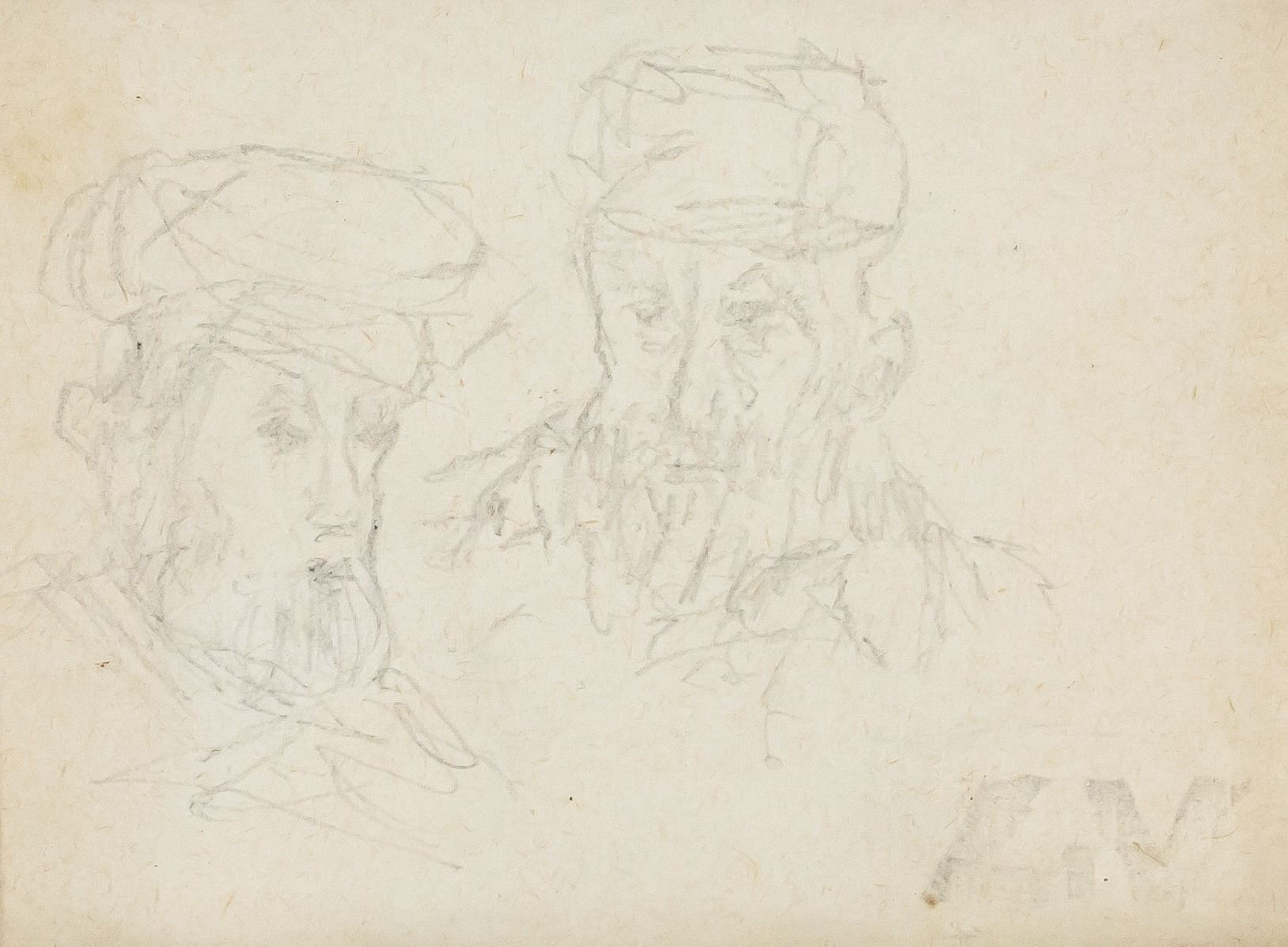 Graphite on paper, framed. Featuring portrait sketch of two men. "L. V." present in bottom right corner. Attributed to Louis Valtat (1869-1952, French). 11 x 15.5 cm (4.25 x 6 inches)