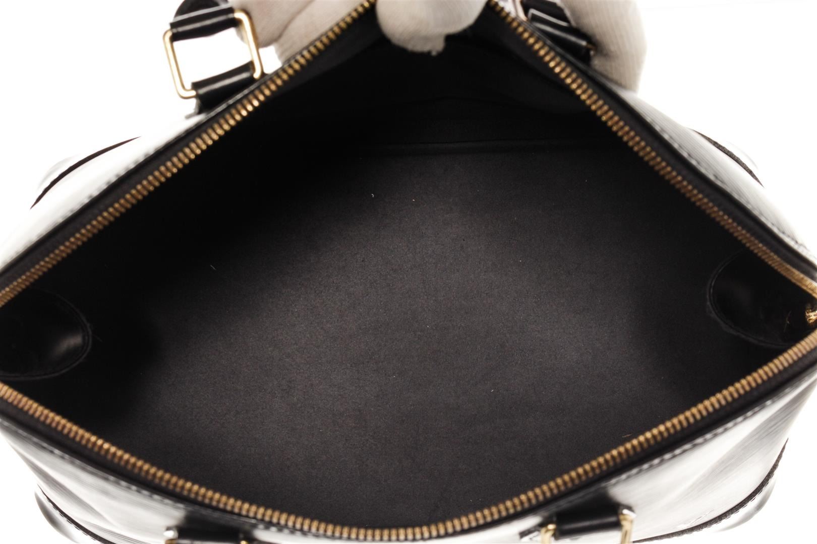 One Louis Vuitton Alma GM. Item is sold AS-IS. All available information is listed in the description and shown in the photo. Louis Vuitton Alma GM Black Epi Leather. Features gold hardware, black canvas interior, black leather handles, and a gold zipper closure.
