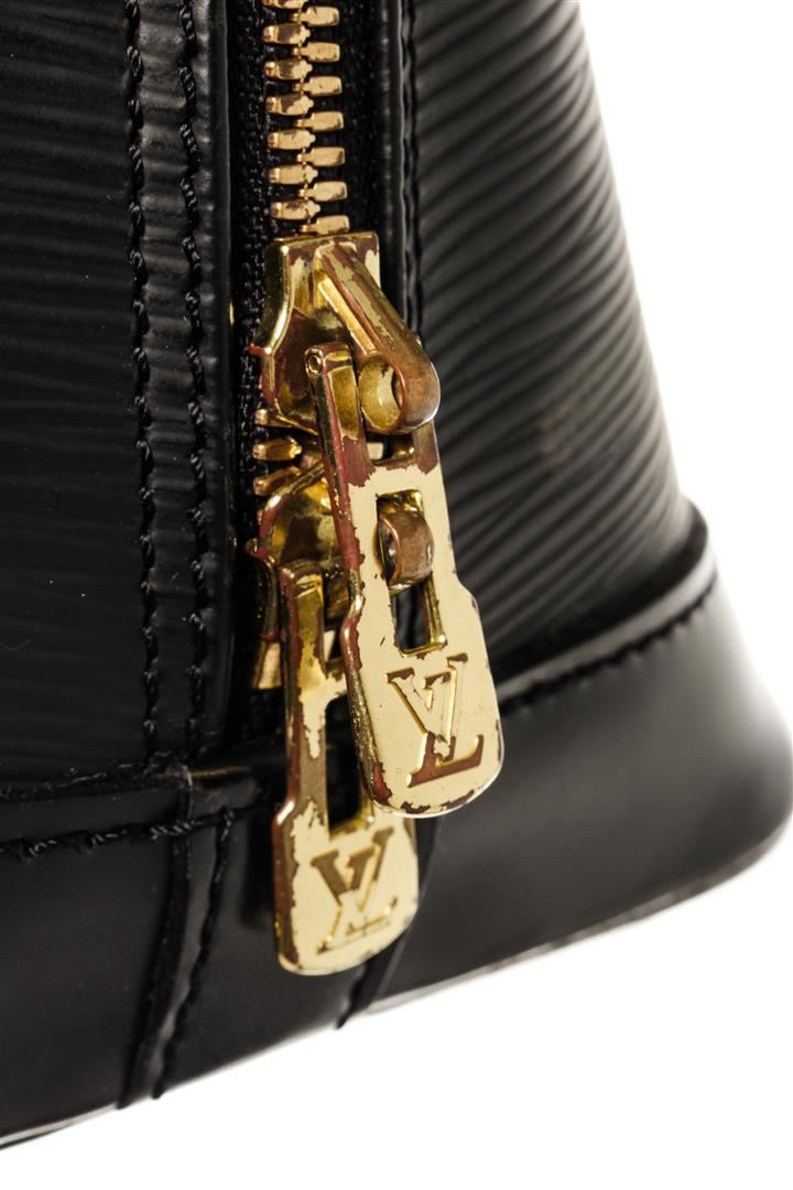 One Louis Vuitton Alma GM. Item is sold AS-IS. All available information is listed in the description and shown in the photo. Louis Vuitton Alma GM Black Epi Leather. Features gold hardware, black canvas interior, black leather handles, and a gold zipper closure.