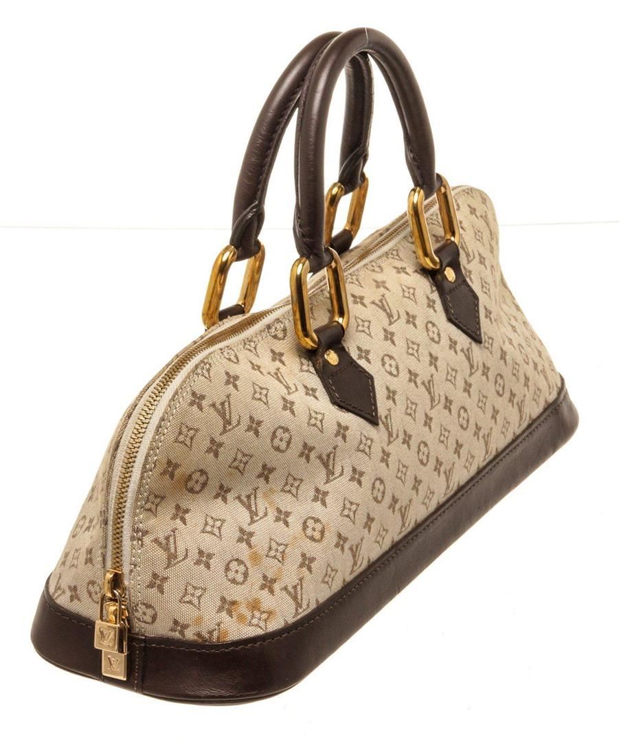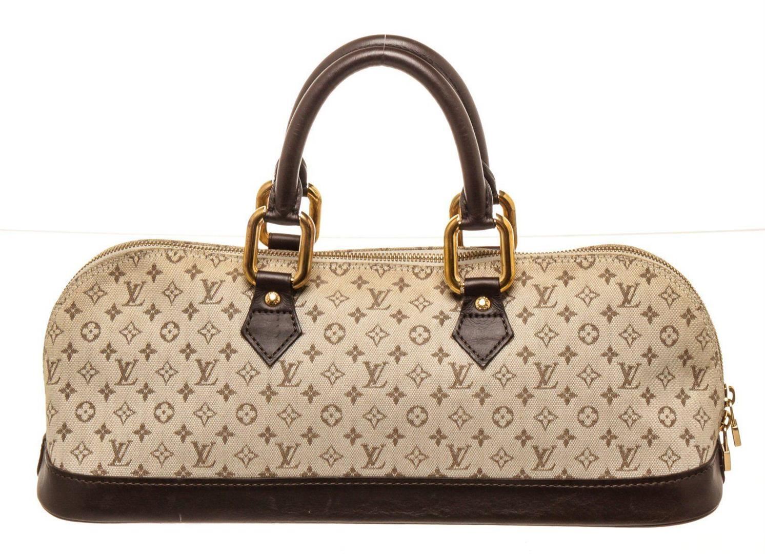 Louis Vuitton Alma Long Beige/Brown Monogram Canvas Tote Bag with material monogram canvas, gold-tone hardware, interior zip pocket, Dual top handles and Zipper closure.