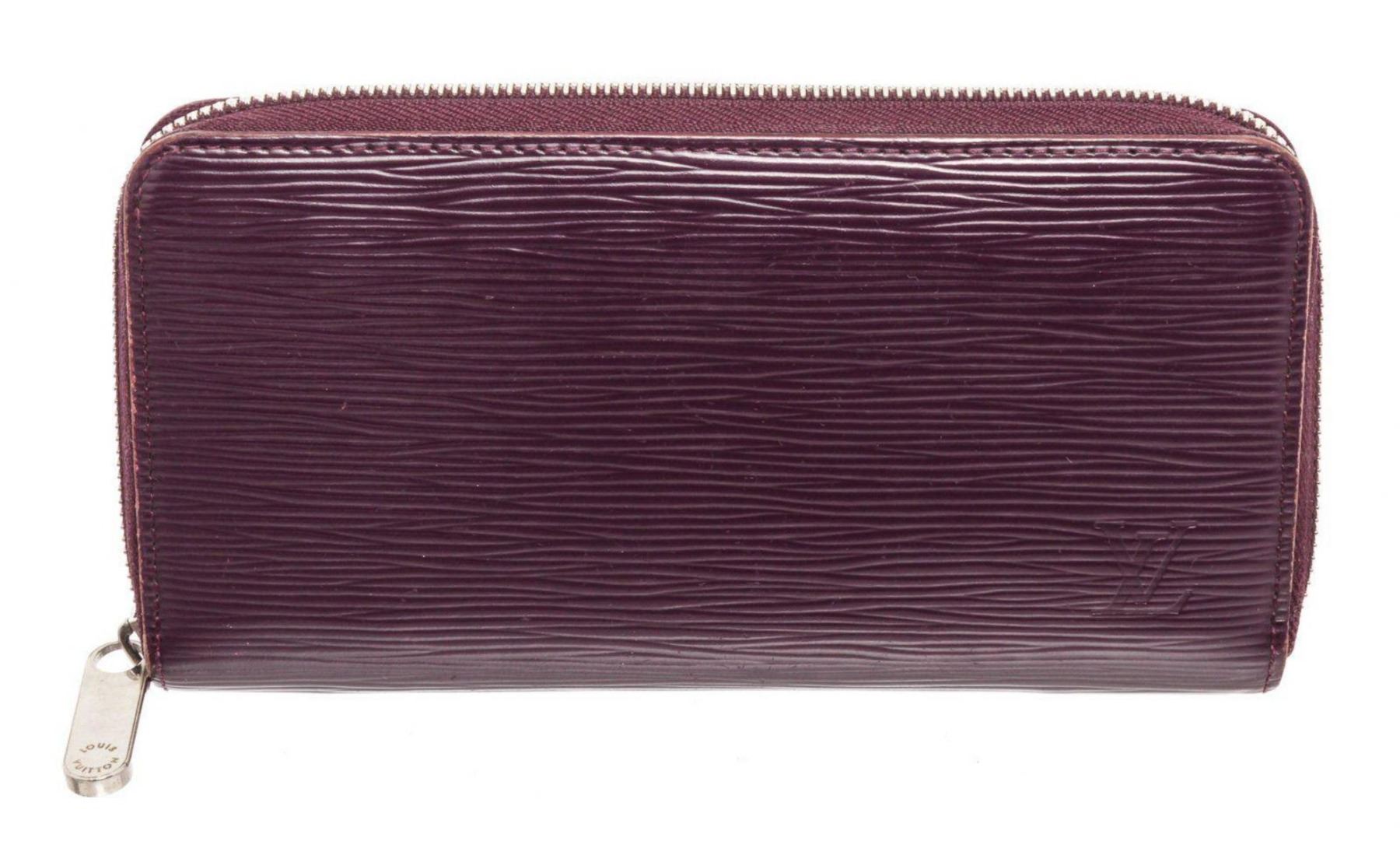 Louis Vuitton Amarante Epi Leather Zippy Wallet. Louis Vuitton Amarante Epi Leather Zippy Wallet with silver-tone hardware, tan vachetta leather trim, interior zip pockets, leather lining, and zip closure. MEASUREMENTS: Length 1 in / 3 cm Width 1 in