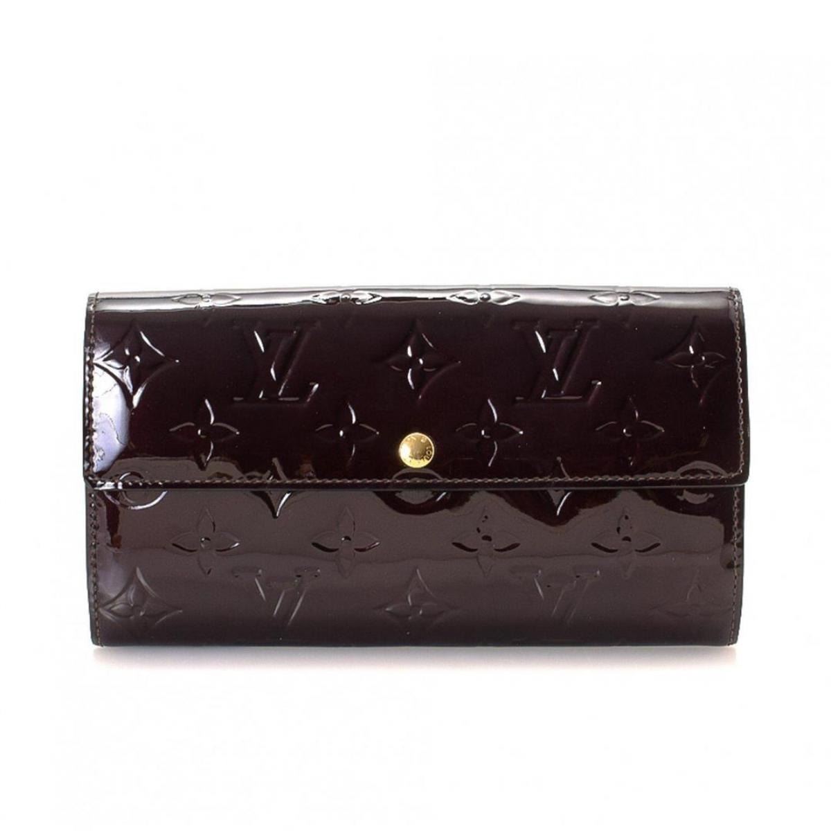Louis Vuitton Black Amarante Vernis Sarah Wallet with gold-tone hardware, trim tan vachetta leather, interior three compartmentspockets and snap closure. Measurements: Length: 7.48 in / 19 cm Width: 0.79 in / 2 cm 3.94 in / 10 cmCONDITION: Pre-Owned Good overall, please see photographs for detail.