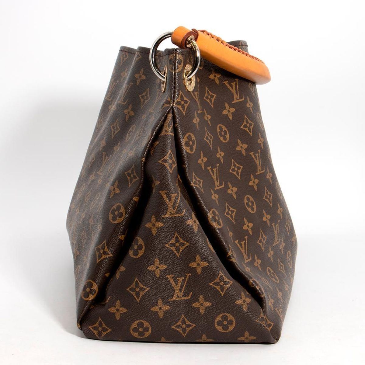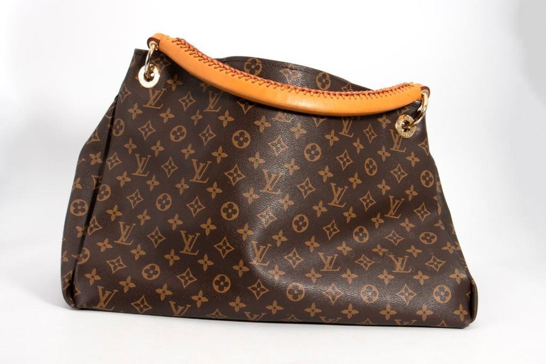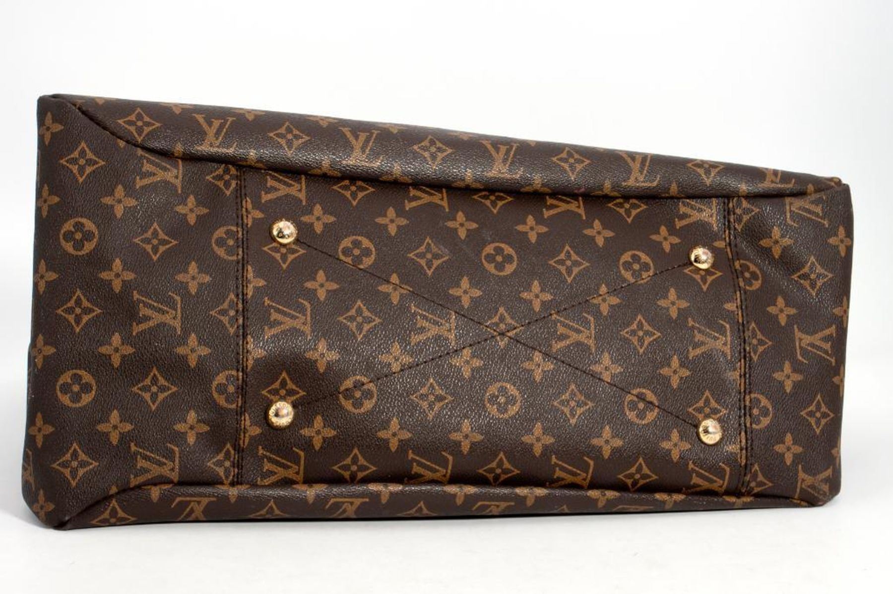 measuring approximately 18 x 9.4 x 12.5in., with later replaced handle done by LV, good overall gently used