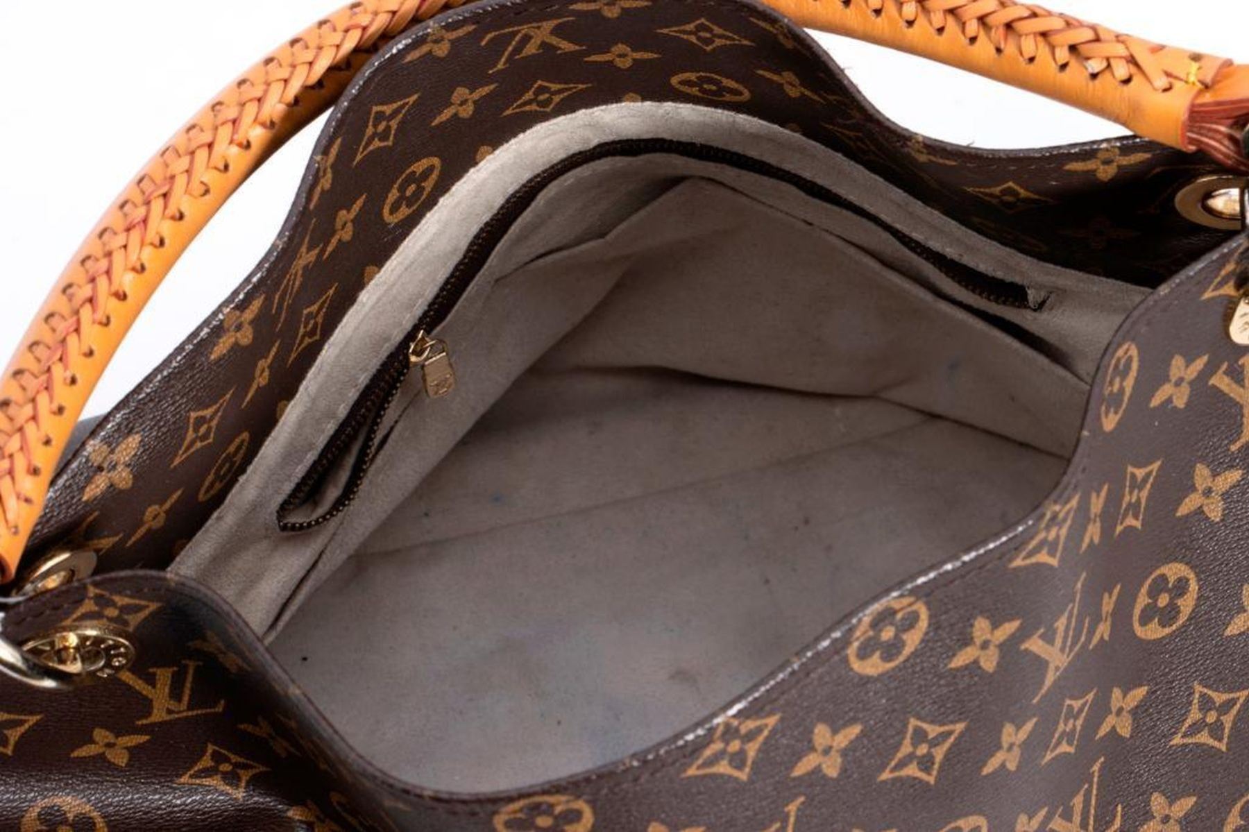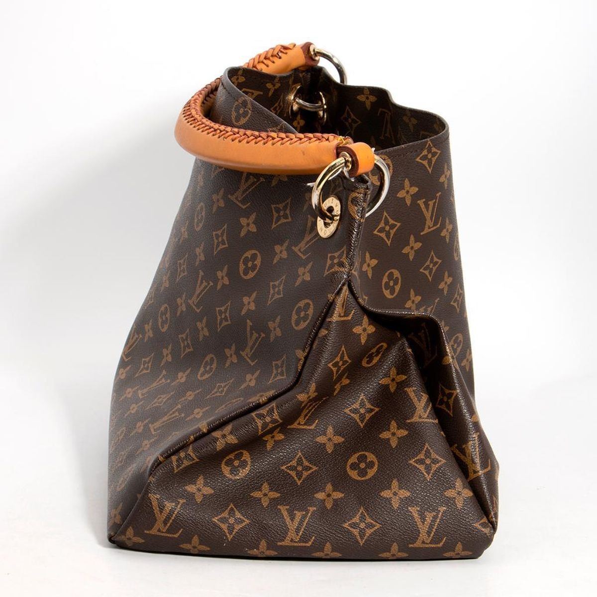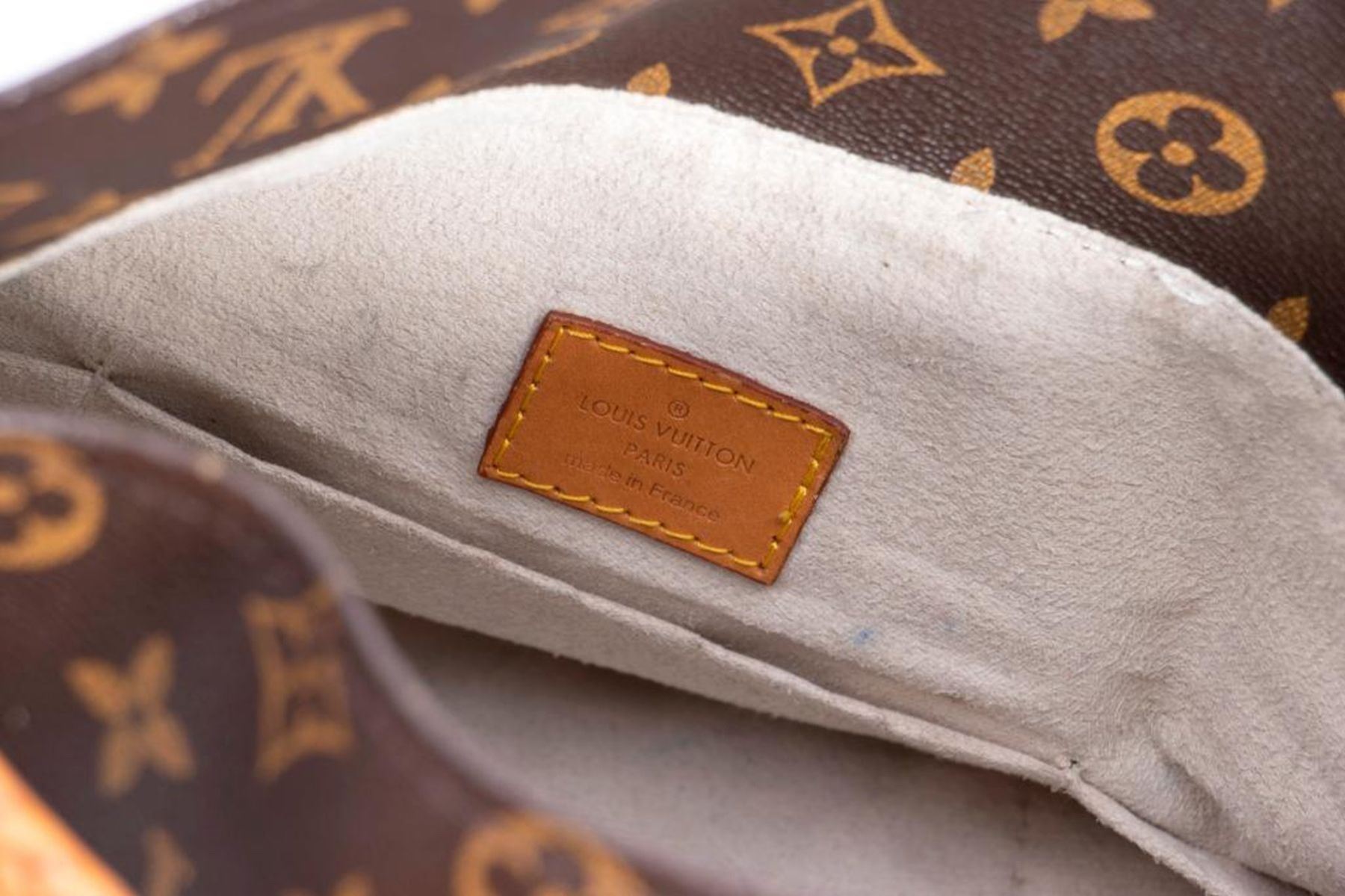measuring approximately 18 x 9.4 x 12.5in., with later replaced handle done by LV, good overall gently used
