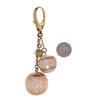 Details: Stylish bag charm with two lovely resin balls in a combination of white, pink and brass, with an additional small brass ball. The balls are attached to a brass claw clasp that can be used either for keys or as a hanging charm to any of your handbag .