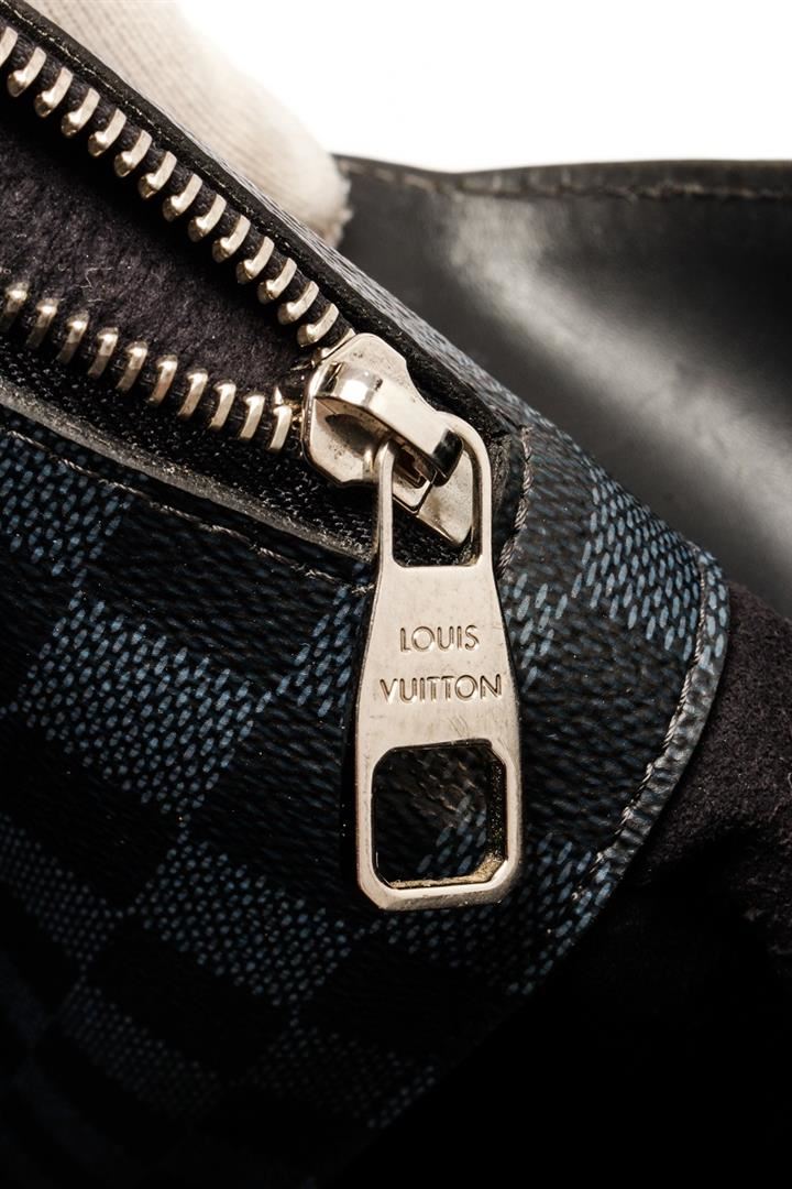 Louis Vuitton Black Damier Cobalt Voyage Tote Bag. All available information is listed in the description and shown in the photos. louis vuitton black damier cobalt voyage tote bag with exterior material: canvas (coated), exterior color: blue, interior material: microfiber, interior color: black, hardware color: silver Height 13", Width 14.5", Depth 4.5", Shoulder Strap Drop: 9" / 33.02 x 36.83 x 11.43 Cm